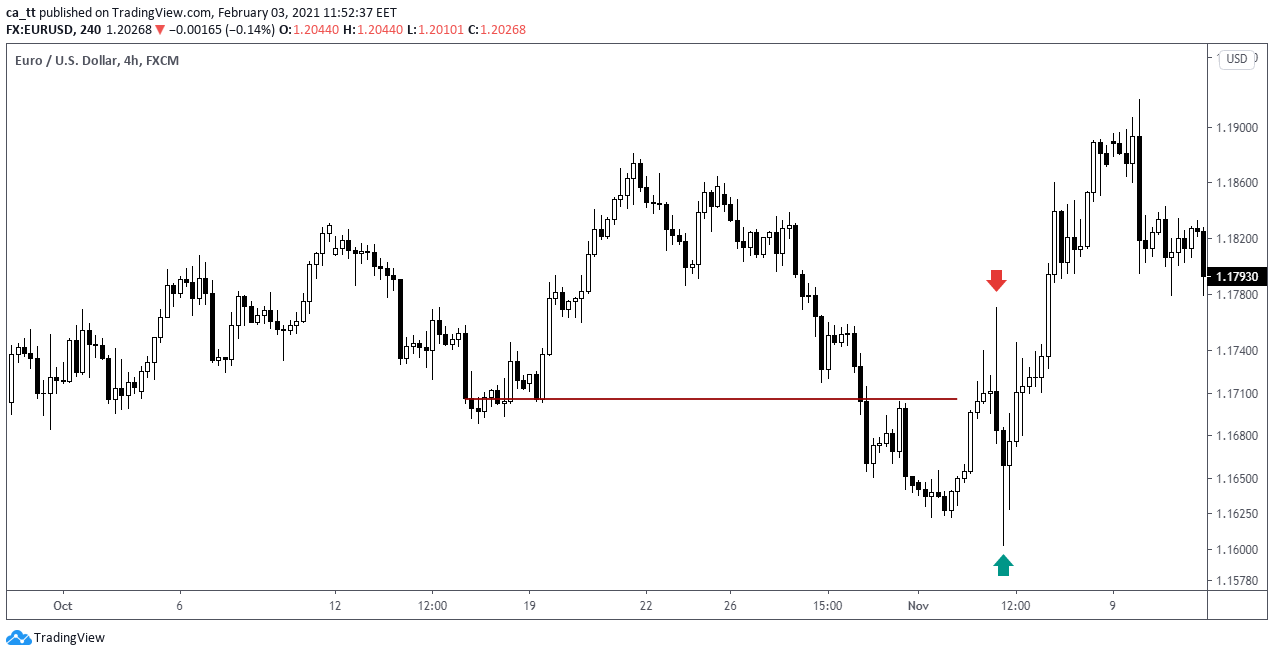 Judging by these elements, you can determine the candle’s strength. And as we’ve already learned – we should always take the context into account. It can be far more important than one particular candlestick.