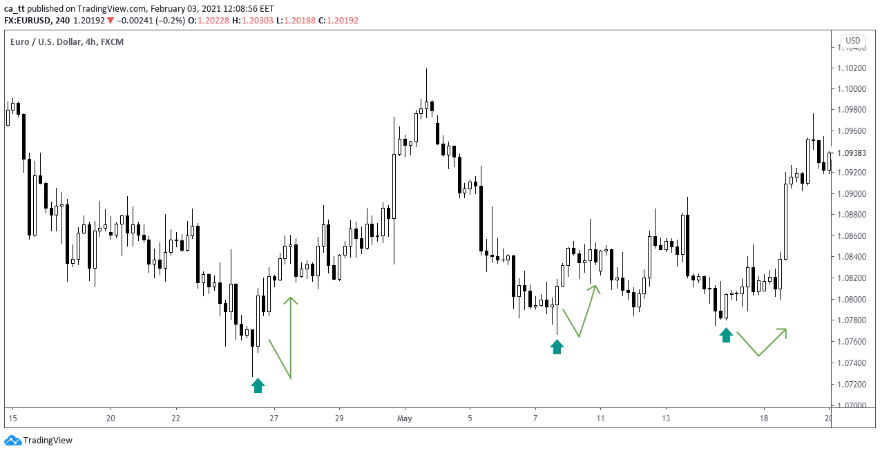 1. Reversal at the bottom (bullish reversal pattern)