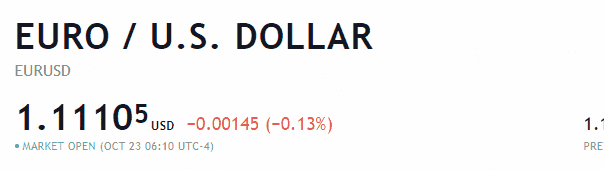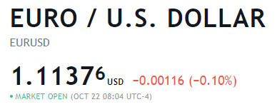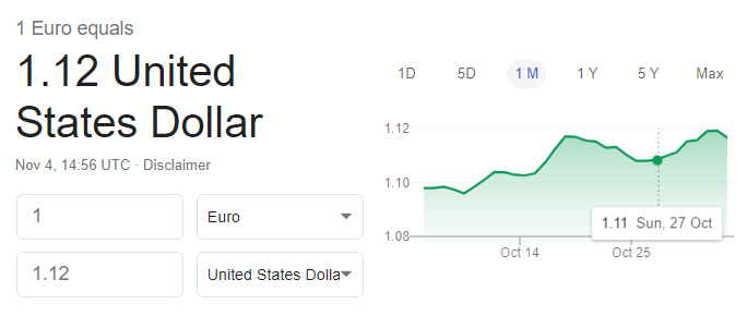 In the example above, the exchange rate of Euro to US dollar is 1.11376. This means that 1 euro is worth 1.11376 dollars.