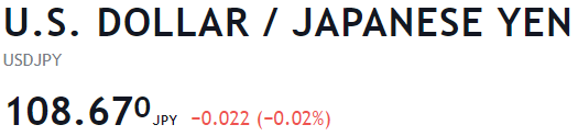 The dollar/yen exchange rate is 108.67. In this pair, dollar goes first, which means that the exchange rate shows how much yen is needed to buy 1 USD.