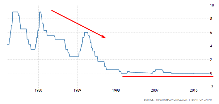 From 1993 through 1998, the interest rate on credit dropped from 6% to zero, and has been remaining such for nearly 20 years now: