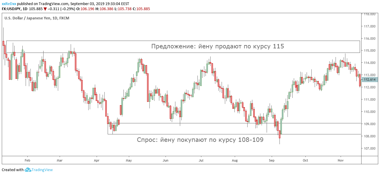 At this dollar/yen chart we can see the area where the price reversed several times. It is demand and supply that are managing the dollar to yen exchange rate.