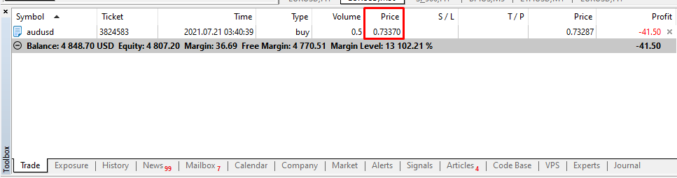 The screenshot below shows an example of “Netting System” when you buy 0.5 lot for EURUSD twice.