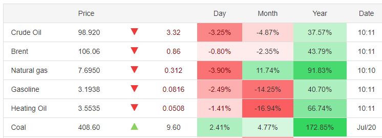 Energy prices on a daily, monthly, and yearly basis. Source: tradingeconomics.com.