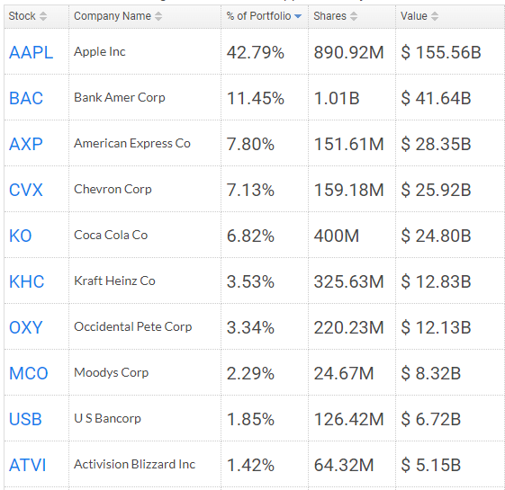 Here’s how the assets are currently allocated inside the Berkshire Hathaway stock portfolio: