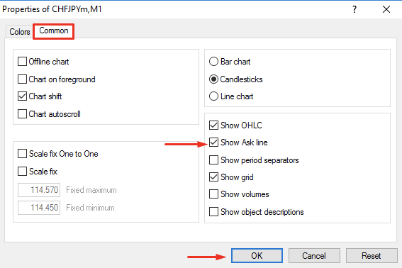 In the new window that opens, select the “Common” tab and check the box “Show Ask line”. Then, click OK.